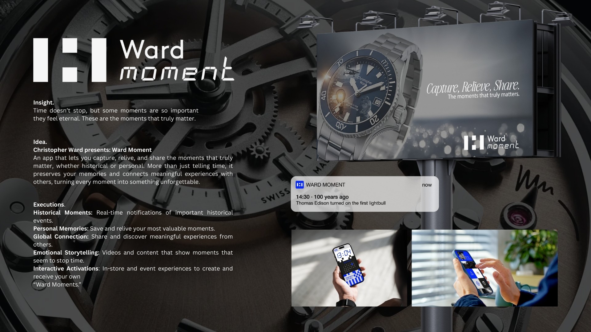 Brief. Christopher Ward aimed to connect with Gen Z by highlighting sustainability, craftsmanship, and transparency through experiences, campaigns, or interactive platforms, without launching new products.